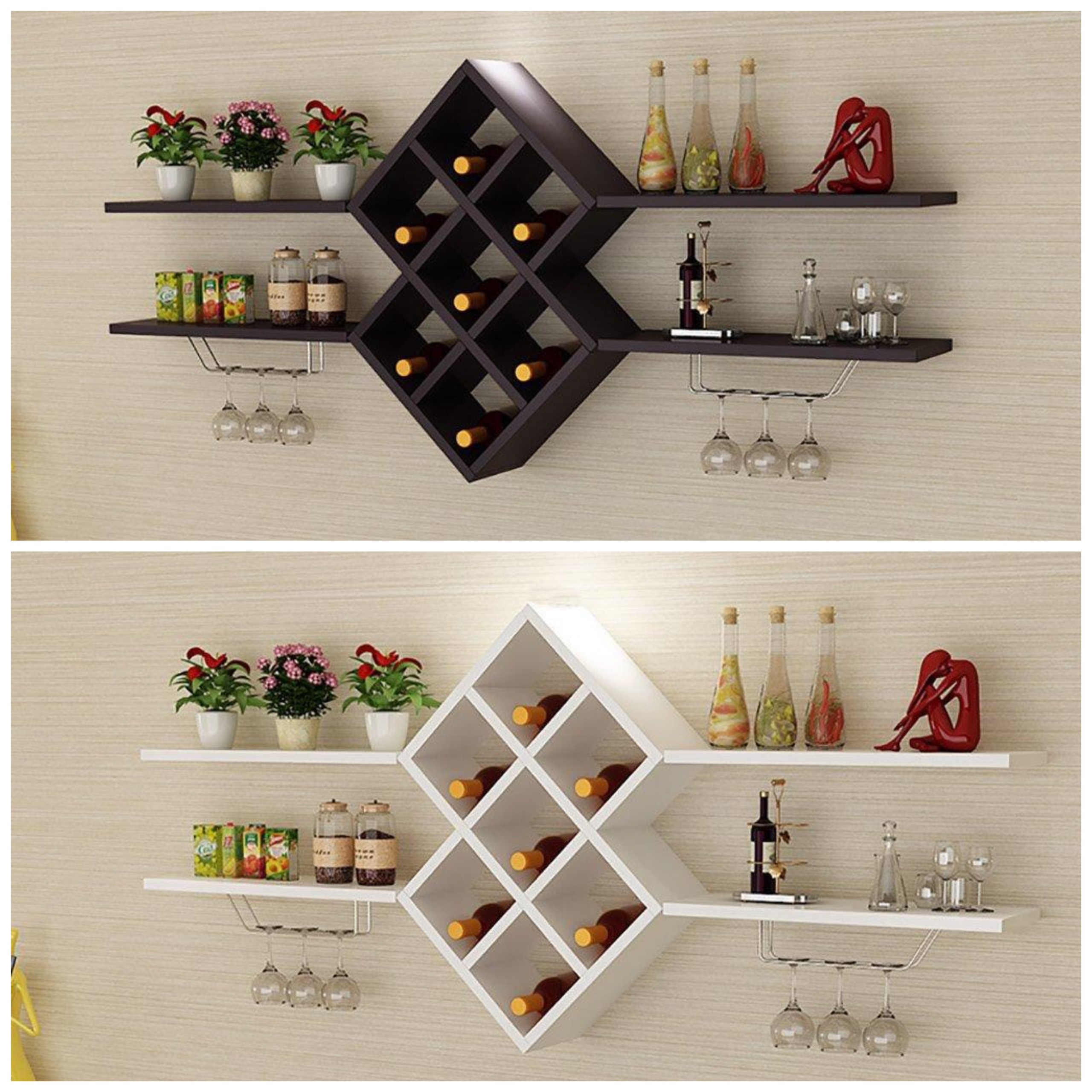 Kệ rượu treo tường với thiết kế đơn giản mà đẹp. Vừa giúp trưng rượu, vừa giúp không gian phòng khách, phòng ăn nhà bạn thêm sang phần sang trọng, xa hoa và đẳng cấp.