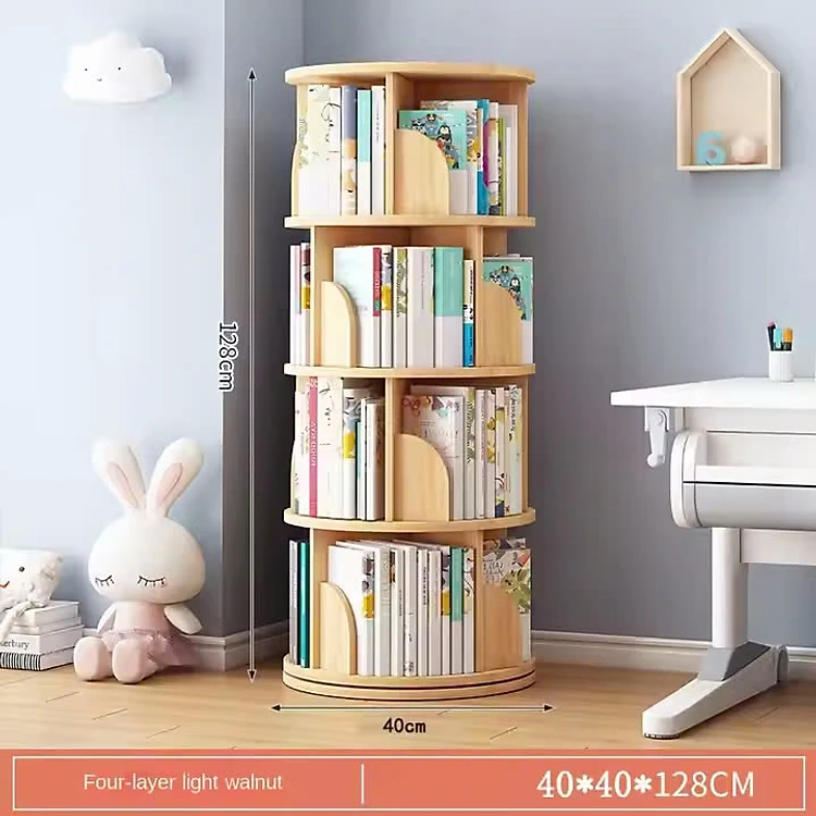 Kệ sách 4-5 tầng giá sách giá đỡ sàn sáng tạo xoay 360 độ giá sách bằng gỗ cho trẻ em sử dụng tại nhà