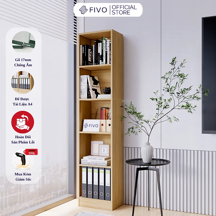 Kệ Sách Gỗ 5 Tầng Màu Gỗ FB73 FIVO Gỗ Chống Ẩm Cao Cấp Dày Dặn, Tấm Lưng Chắc Chắn, Để Được Sách Vở Tài Liệu Kích Thước Lớn