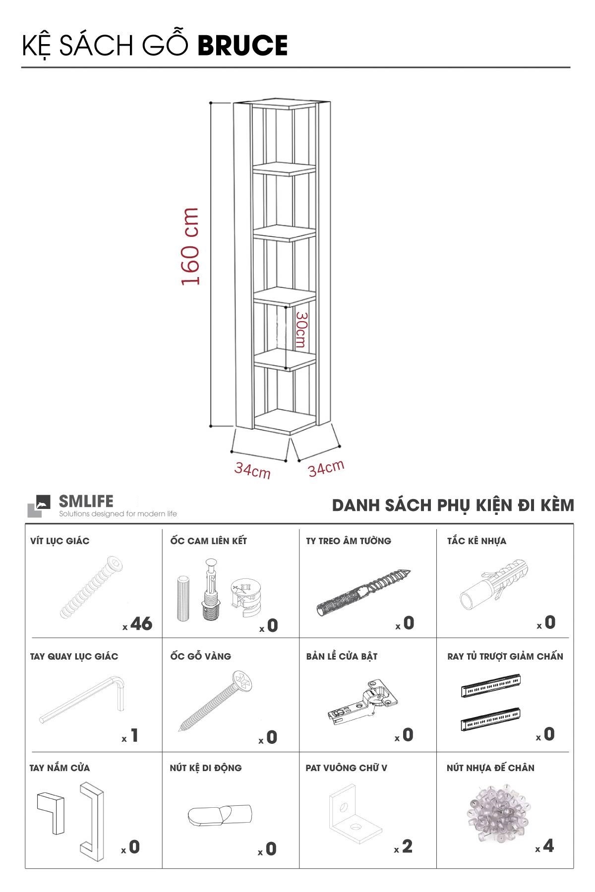 Kệ sách gỗ hiện đại SMLIFE Bruce là kệ sách góc được thiết kế với phong cách đơn giản giúp bạn tận dụng các khu vực góc chết của căn nhà để sắp sếp những cuốn sách một cách sành điệu và độc đáo. Kệ sách Bruce mang đến sự tinh tế, hiện đại cho phòng khách của bạn và đồng thời cung cấp một không gian lớn cho các vật dụng trang trí. Sản phẩm phù hợp cho mọi phong cách trang trí căn hộ và văn phòng làm việc. Sử dụng vật liệu ván ép công nghiệp MDF chống ẩm phủ Melamine cao cấp giúp kệ sách SMLIFE có độ bền cao, chống trầy và chống ẩm rất tốt. Bạn có thể tự lắp đặt sản phẩm dễ dàng với các phụ kiện và hướng dẫn đi kèm.