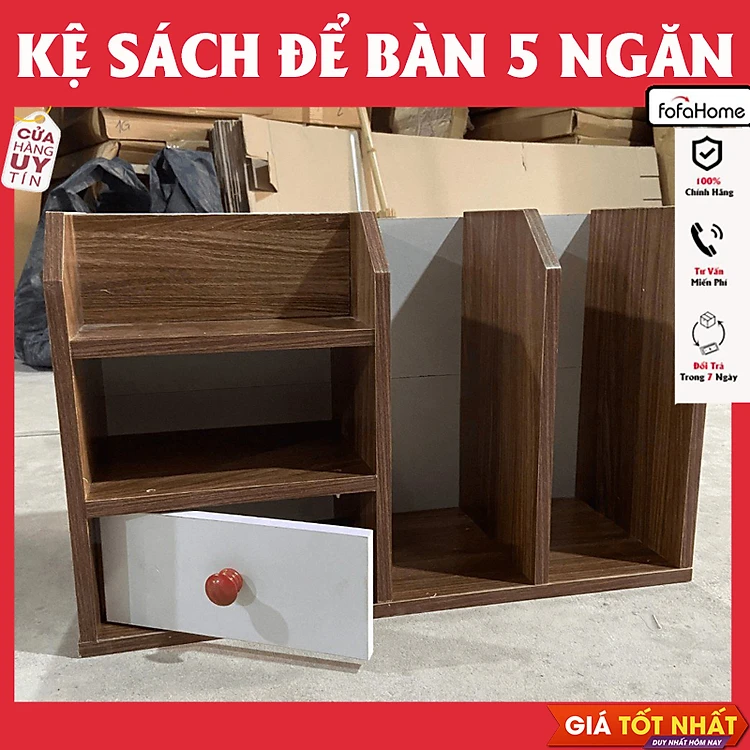 Kệ Sách Gỗ MDF Để Bàn 5 Ngăn 1 Ngăn Kéo, Tủ Hồ Sơ Tài Liệu Để Phòng Làm Việc Cao Cấp