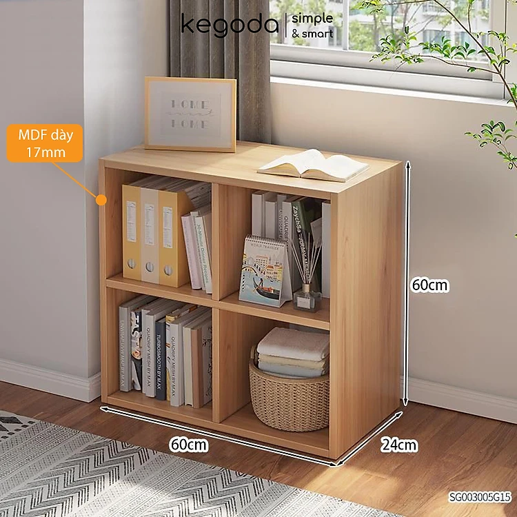 Kệ Sách Gỗ Tổ Ong 4 Ô Dài 60cm, Rộng 24cm Cao 60cm Thương Hiệu KEGODA KGD32