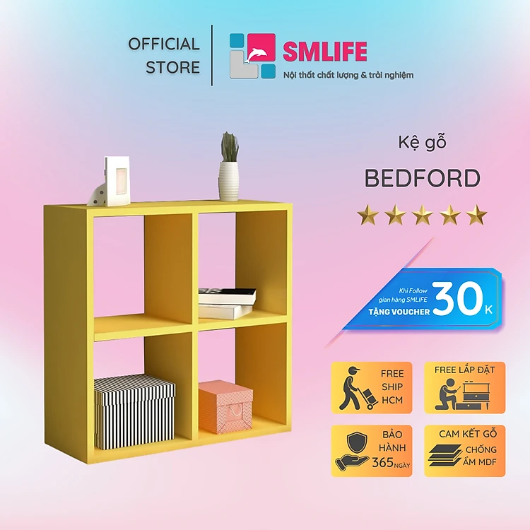 Kệ giá đỡ sách gỗ công nghiệp thiết kế đa năng SMLIFE Bedford