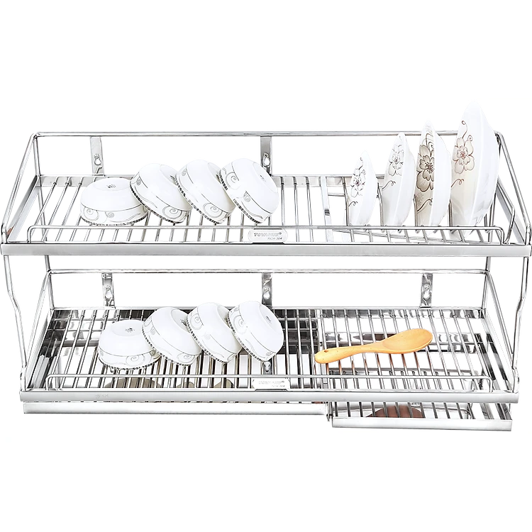 Kệ sóng chén 2 tầng bắt vít có khay inox 304 TOVASHU nhiều kích cỡ 304-6X2, 304-7X2, 304-8X2, 304-9X2