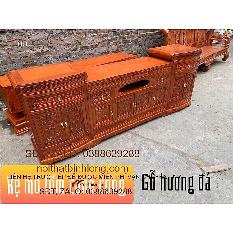 Kệ ti vi mõ lõm gỗ hương đá