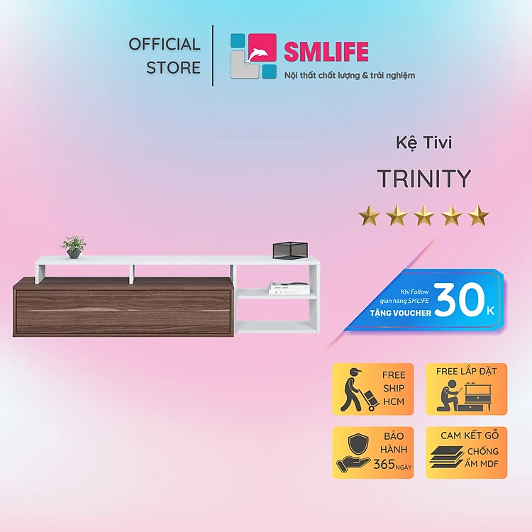 Kệ để tivi gỗ cho phòng khách gia đình SMLIFE Trinity