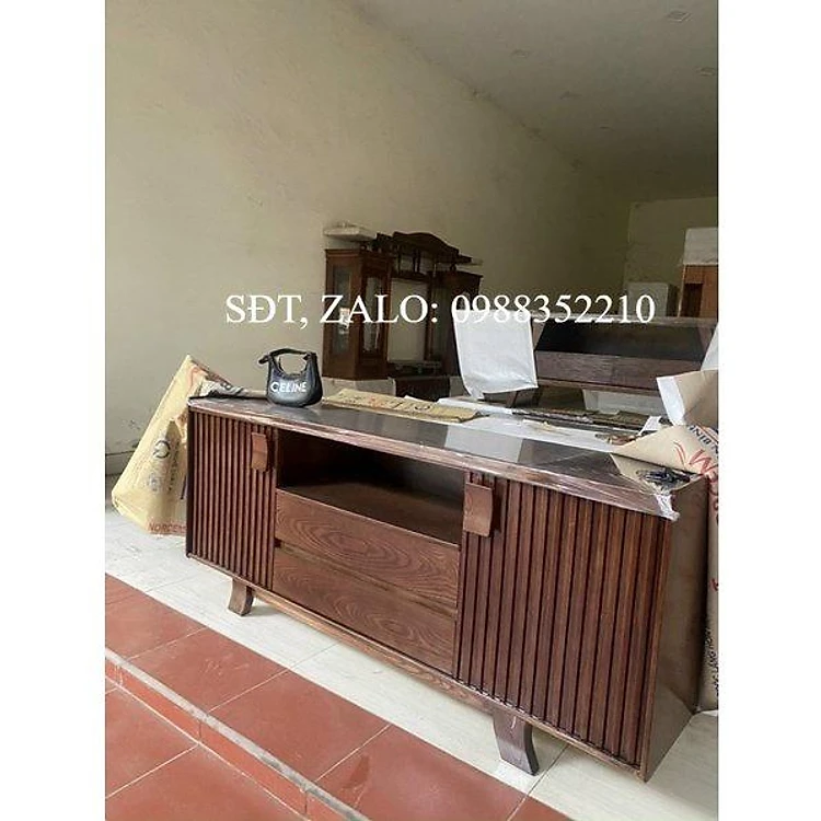Kệ tivi gỗ sồi phun màu óc chó và xoan đào.