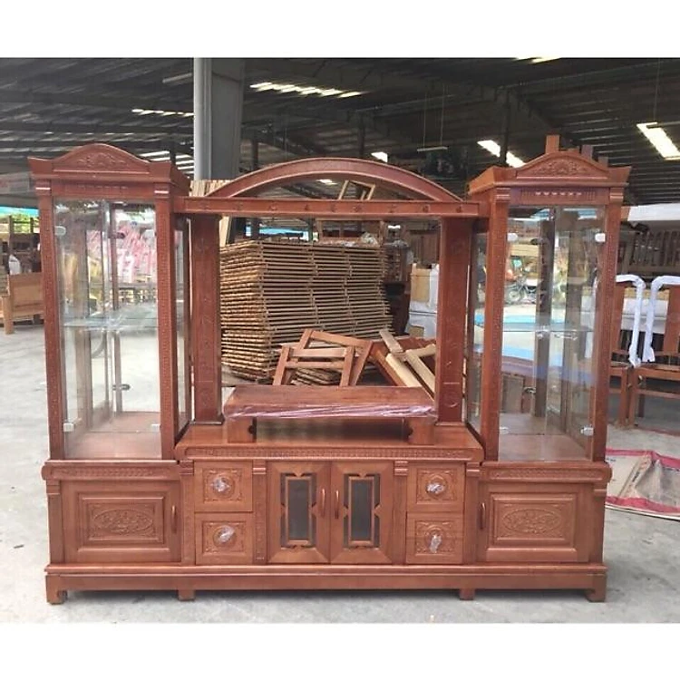 Kệ tivi kính mái vòm gỗ xoan đào 2m2-2m4