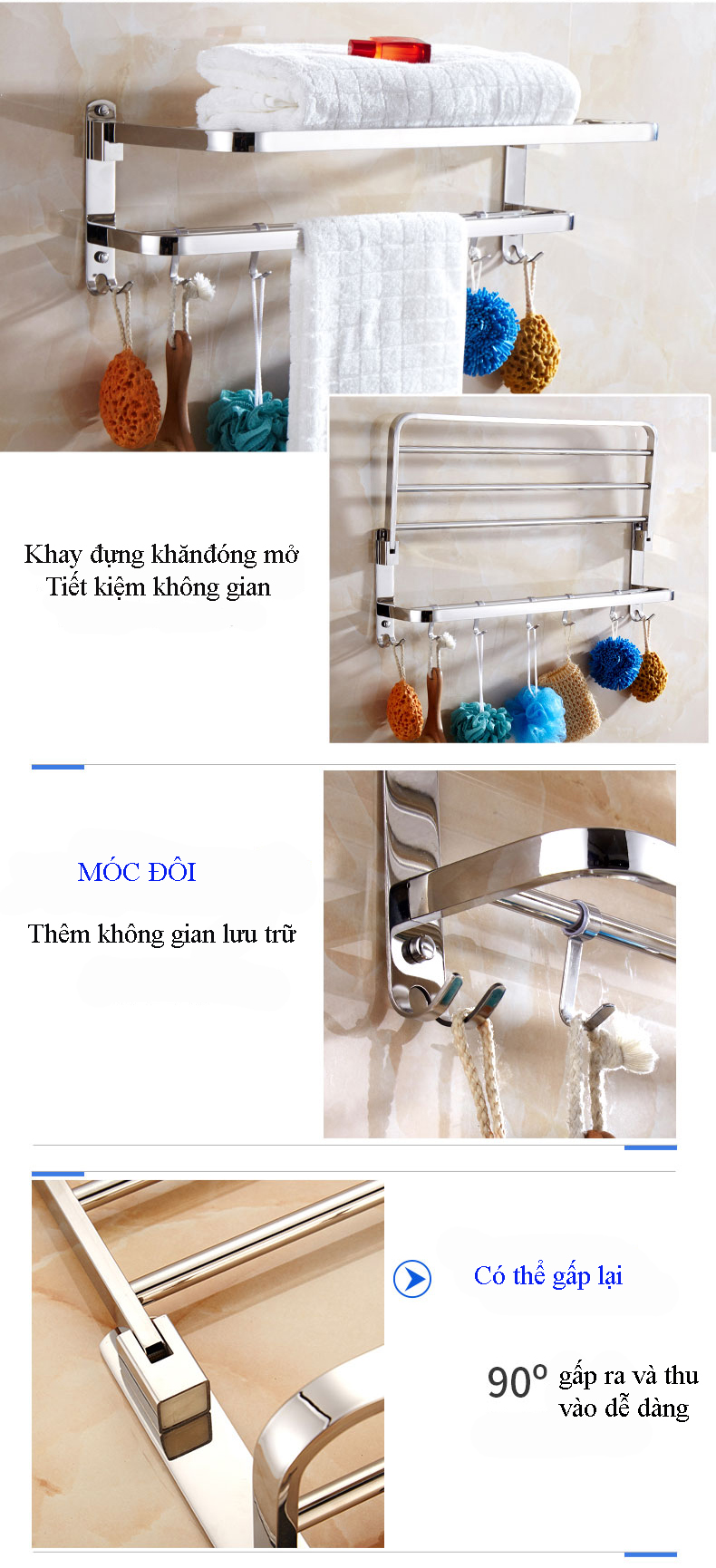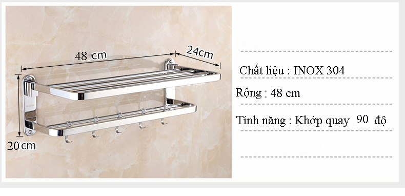 Với thiết kế thông minh và linh hoạt, Kệ treo khăn tắm Inox SUS 304 đa chức năng) sẽ giúp bạn để được nhiều đồ hơn và tận dụng tối đa không gian của phòng tắm. Sản phẩm kệ đa năng sẽ mang đến cho phòng tắm của bạn sự gọn gàng và sang trọng !