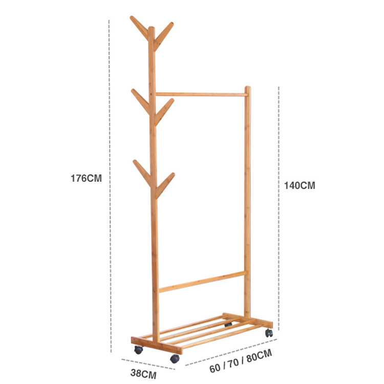 -Tên sản phẩm: Kệ treo quần áo bằng gỗ có bánh xe GS00185