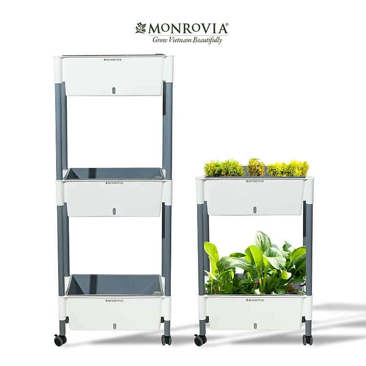 Kệ trồng rau tự tưới D202 MONROVIA cho rau, hoa, có bánh xe di chuyển thuận lợi