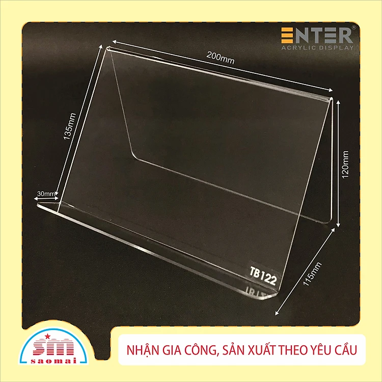 Kệ trưng bày mica chữ V Enter TB122 200x115x135mm mica dày 2mm, Giá trưng bày sản phẩm, Kệ trưng bày nhà sách