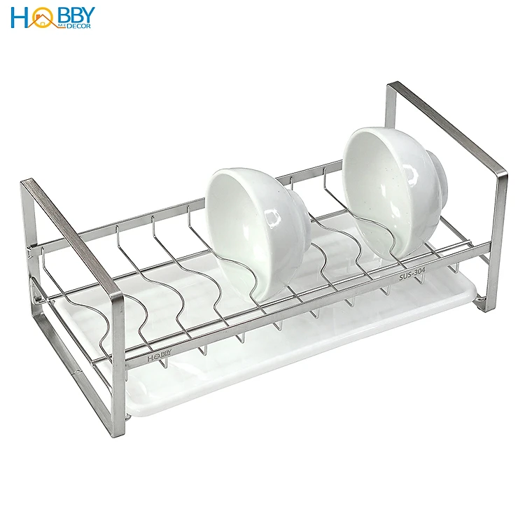Kệ úp chén 9 ngăn có khay nhựa nhỏ gọn Inox 304 Hobby Home Decor KUC9