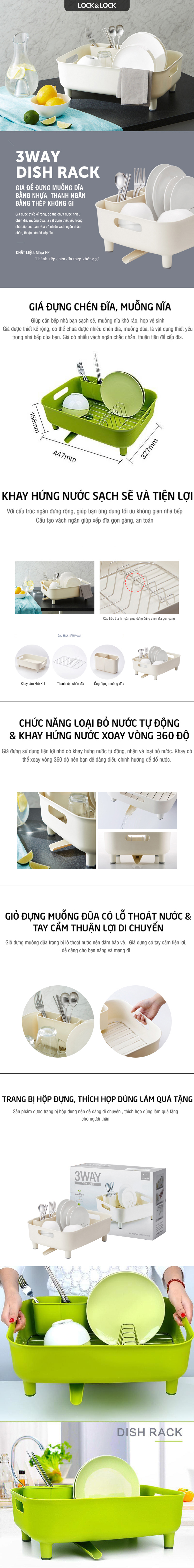- Kệ úp chén dĩa Lock&Lock LDR110 - Hàng chính hãng, chất liệu nhựa PP, thanh ngăn bằng thép không gỉ, có khay hứng và thoát nước được làm bằng chất liệu nhựa PP bền đẹp, không chứa chất độc hại, thân thiện với môi trường, đảm bảo an toàn cho sức khỏe và rất dễ vệ sinh.