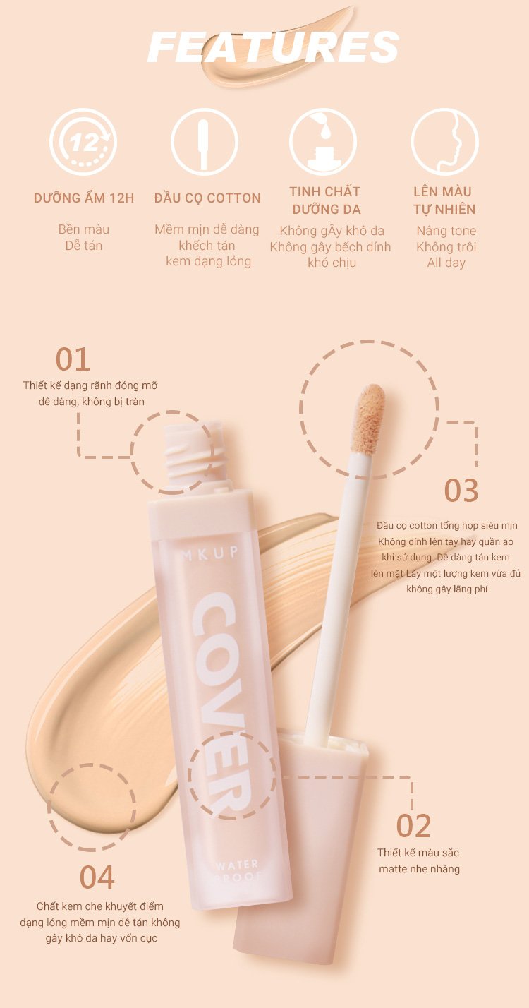 Kem che MKUP khuyết điểm dưỡng ẩm không trôi suốt 12h