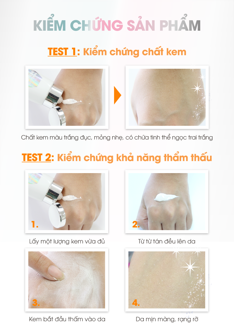 - Hiệu ứng ánh nhũ bắt sáng: Kem có chiết xuất từ tinh thể ngọc trai trắng, cho hiệu ứng nhũ lấp lánh