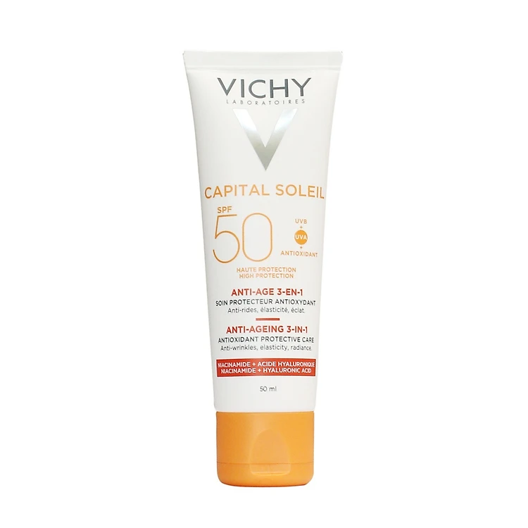 Kem Chống Nắng Bảo Vệ Và Giúp Giảm Các Dấu Hiệu Lão Hóa Vichy Capital Ideal Soleil Anti-Ageing SPF50+ UVB+UVA 50ML