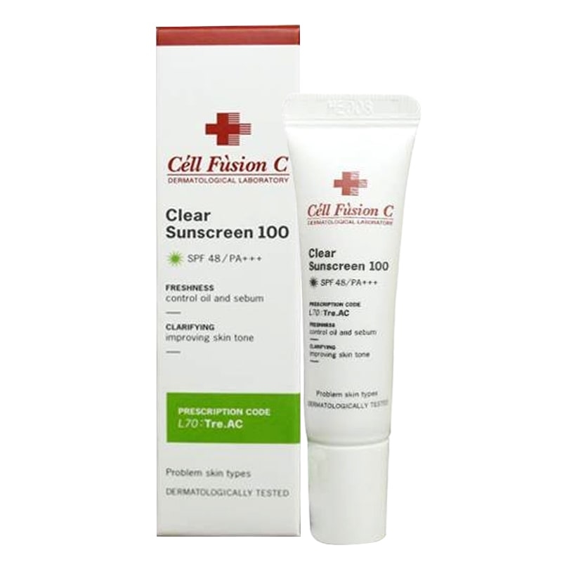 Kem chống nắng CELL FUSION C Tre.AC Clear Sunscreen 100 là dòng cải tiến, dòng màu xanh phù hợp da dầu, có Mụn, một số tác dụng chính của kem chống nắng CELL FUSION C Tre.AC Clear Sunscreen 100 là: