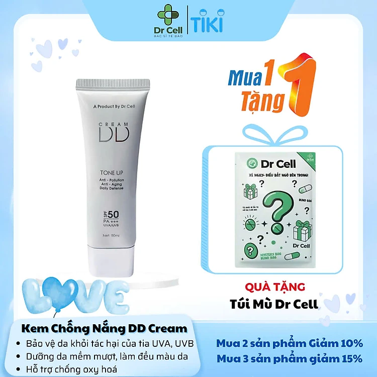 [TẶNG TÚI MÙ DR CELL] Kem Chống Nắng DD Cream DR CELL 50ml chống nắng bảo vệ da, dưỡng ẩm, che khuyết điểm ngăn ngừa sạm nám - Hàng Chính Hãng