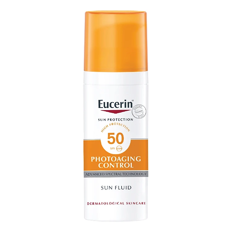 Kem chống nắng giúp ngăn ngừa lão hóa da Eucerin Sun Fluid Photoaging Control SPF 50 có màng lọc tia UVA, UVB tối ưu giúp bảo vệ da khỏi tác hại của ánh nắng mặt trời