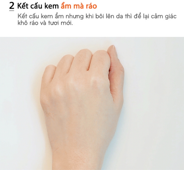 -Kết cấu kem ẩm, nhưng khi bôi lên da lại mang đến cảm giác tươi mới và khô ráo.