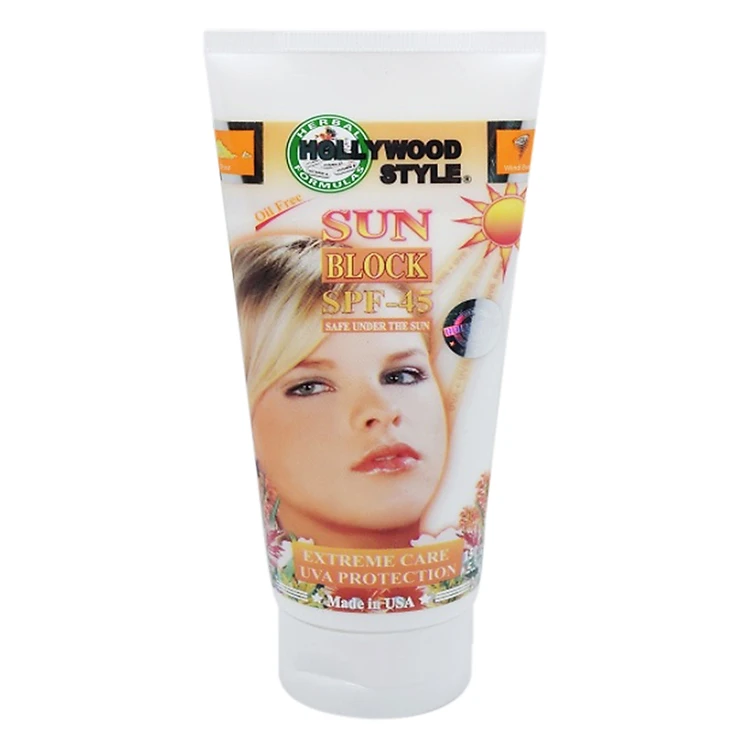 - Kem Chống Nắng Hollywood Style Sunblock SPF 45 (150ml) chăm sóc hiệu quả làn da dưới nắng bằng việc cung cấp dưỡng chất chống oxi hóa giúp da khỏe mạnh, hồng hào và không bị đen sạm.