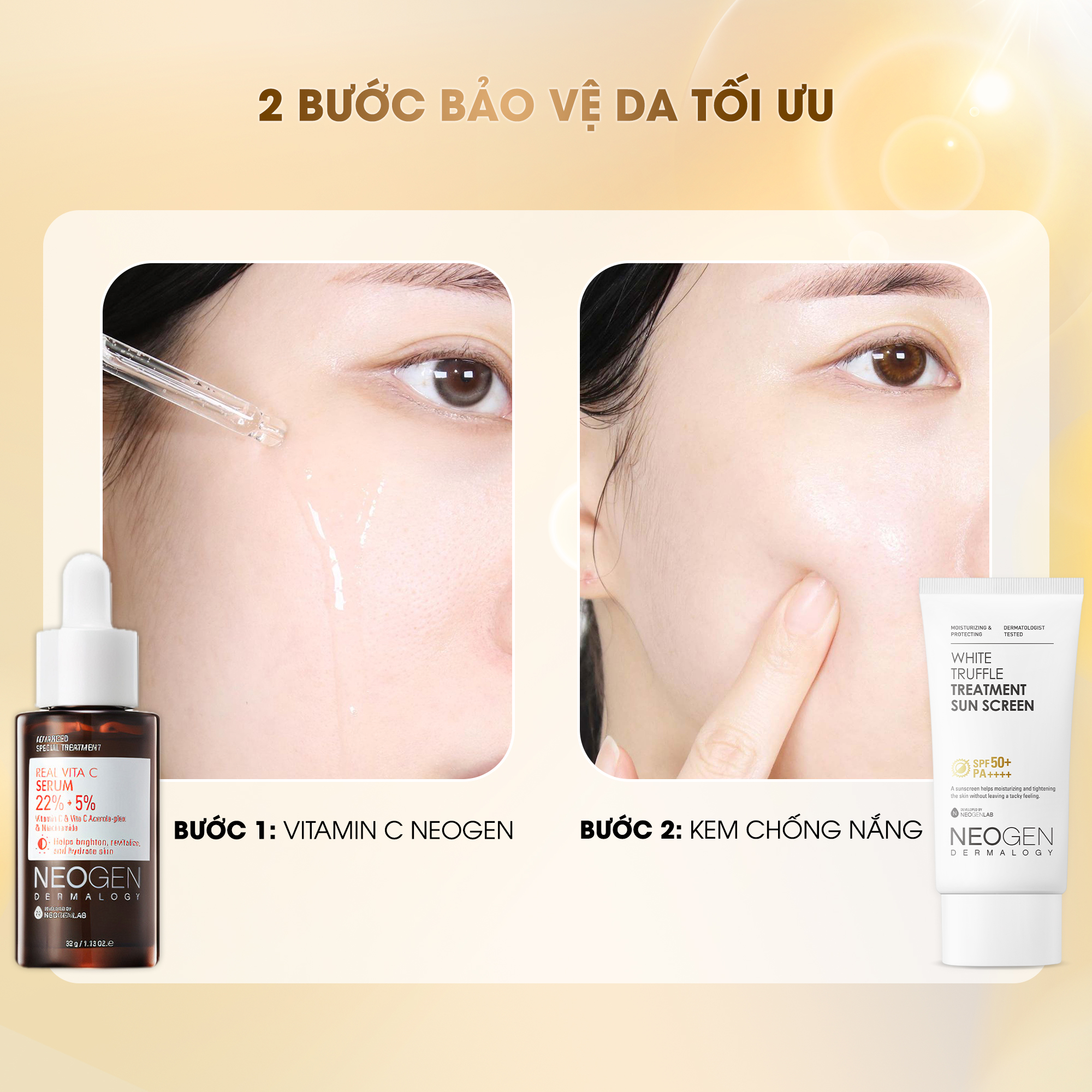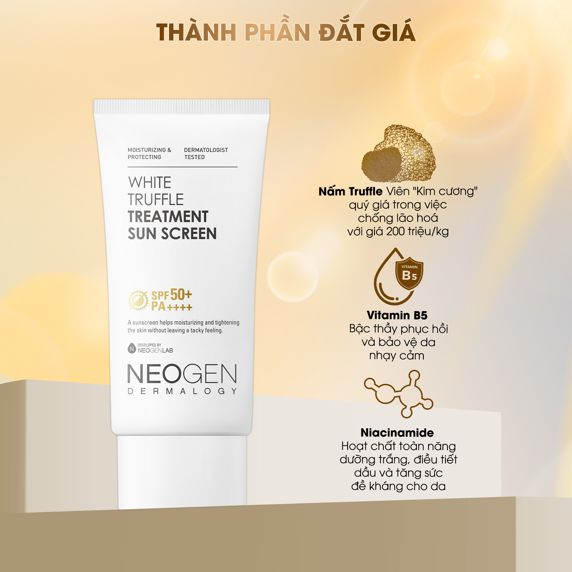 Sự kết hợp hoàn hảo của công nghệ chống nắng NEO-LOCK, cùng màng lọc tiên tiến và thành phần bảo vệ da quý hiếm đắt giá. Kem chống nắng NEOGEN White Truffle Treatment Sun Screen được bình chọn No.1 có chỉ số chống nắng vượt trội nhất được kiểm nghiệm bởi Viện Da Liễu Hàn Quốc.