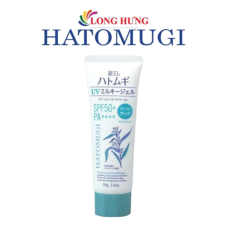 Kem chống nắng nâng tone Hatomugi Kumano Reihaku UV Care & Tone Up Milky Gel SPF50+ PA++++ (70g) - Hàng chính hãng