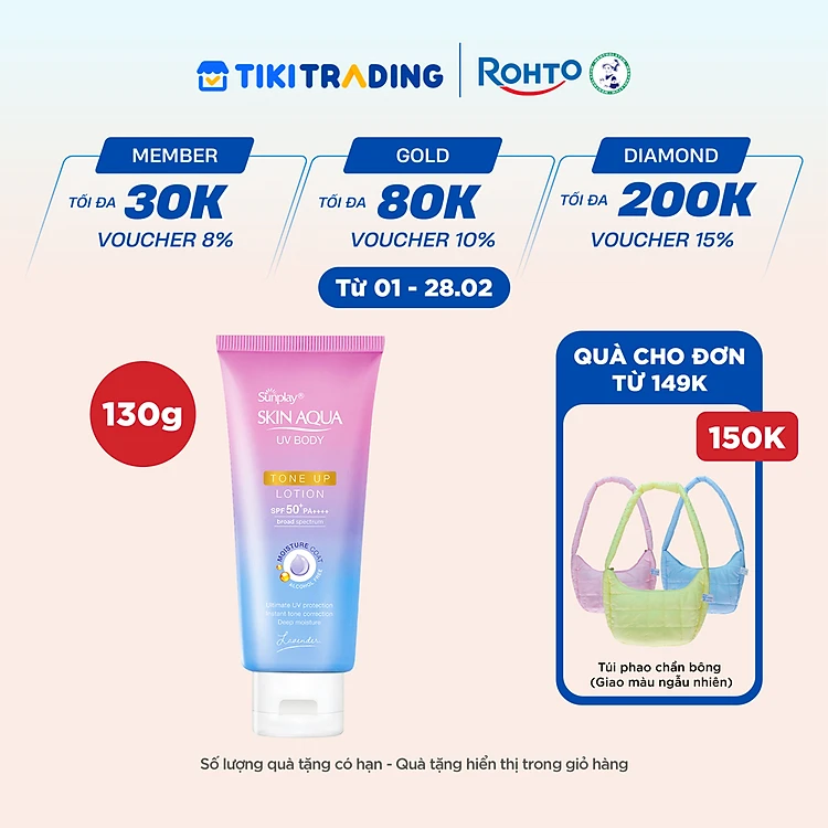 Kem chống nắng nâng tông body Skin Aqua dưỡng thể sáng mịn Sunplay Skin Aqua UV Body Tone up Lavender Lotion SPF 50+ PA++++ 130g