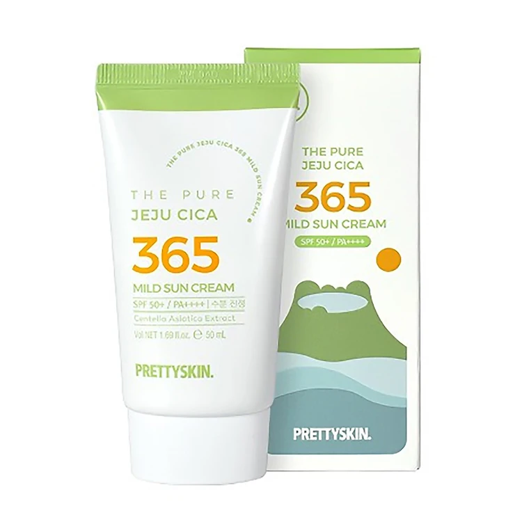 Kem chống nắng nâng tông, kháng nước 365 Pretty Skin The Pure Jeju Cica 365 Mild Sun Cream
