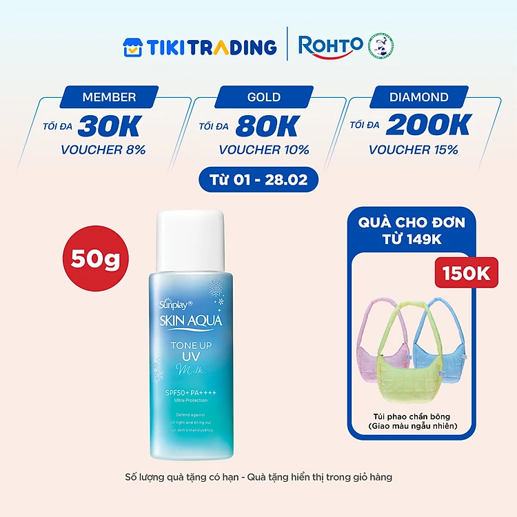 Kem chống nắng nâng tông Skin Aqua Tone up Blue cho da vàng có khuyết điểm đỏ, dạng sữa Sunplay Skin Aqua Tone Up UV Milk Blue SPF 50+ PA++++ 50g