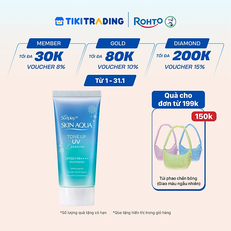 Kem chống nắng nâng tông Skin Aqua Tone up Blue cho da vàng có khuyết điểm đỏ, dạng tinh chất Sunplay Skin Aqua Tone Up UV Essence Blue SPF 50+ PA++++ 50g