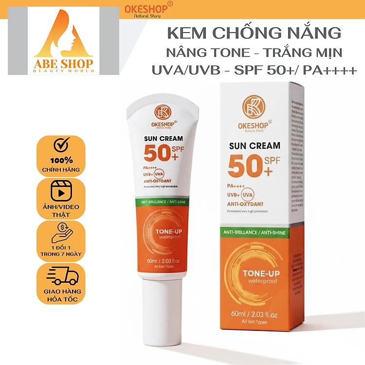 Kem Chống Nắng OKESHOP 60ml SPF 50+ PA++++ Anti-oxydant Tone - Up - Bảo Vệ Da Tuyệt Đối - Anti-Brillance / Anti-shine