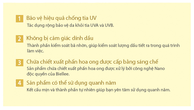 Sử dụng sản phẩm sau các bước dưỡng da và trước khi ra ngoài 15 phút. Có thể dùng làm lớp lót trước trang điểm