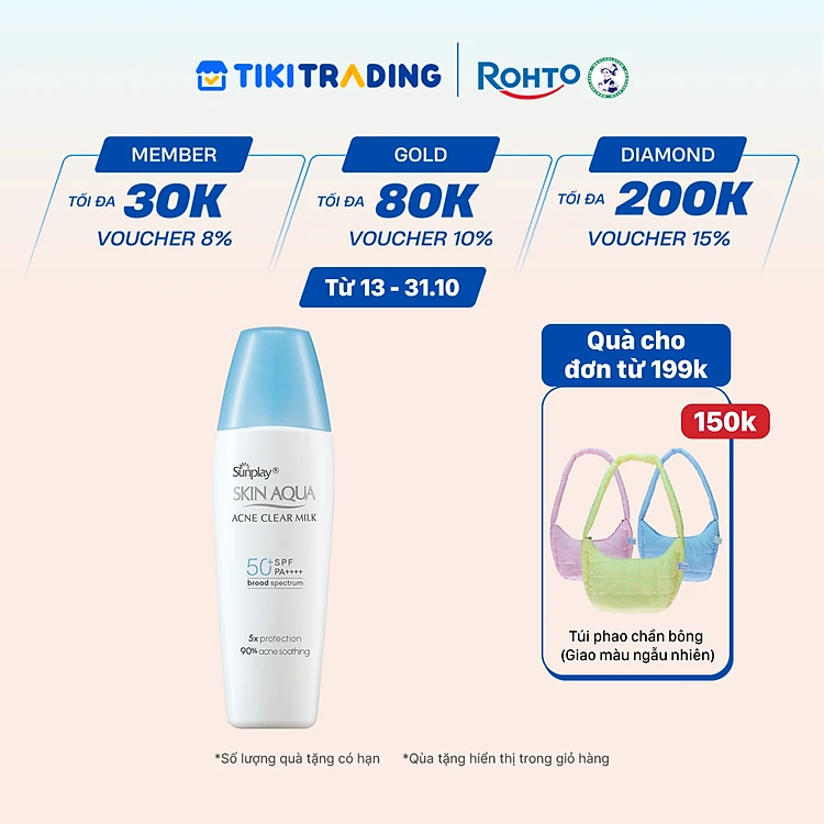 Kem chống nắng Skin Aqua cho da mụn, dạng sữa dùng hàng ngày Sunplay Skin Aqua Acne Clear Eco Việt Nam SPF 50, PA++++ 25g