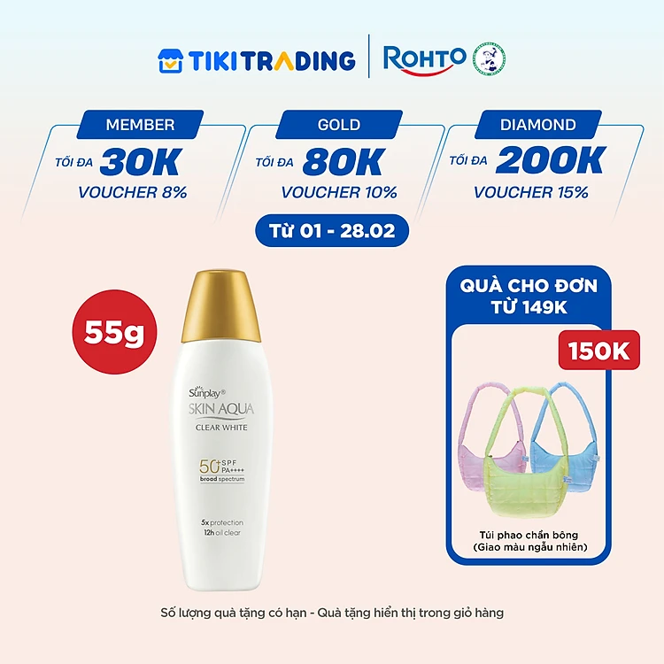 Kem chống nắng Skin Aqua dưỡng trắng, kiểm dầu, dùng hàng ngày dạng sữa Sunplay Skin Aqua Clear White Eco Việt Nam SPF50, PA++++ 55g