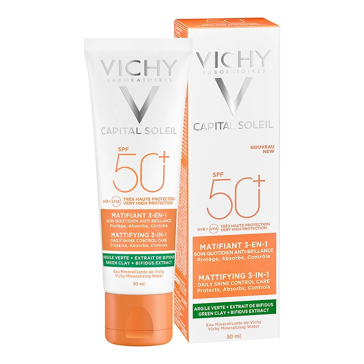 Kem Chống Nắng Vichy Ngừa Sạm Da, Giảm Thâm Nám (Màu Da) 50ml Capital Soleil Anti-Dark Spot 3-in-1 Tinted Daily Care SPF 50 UVA + UVB