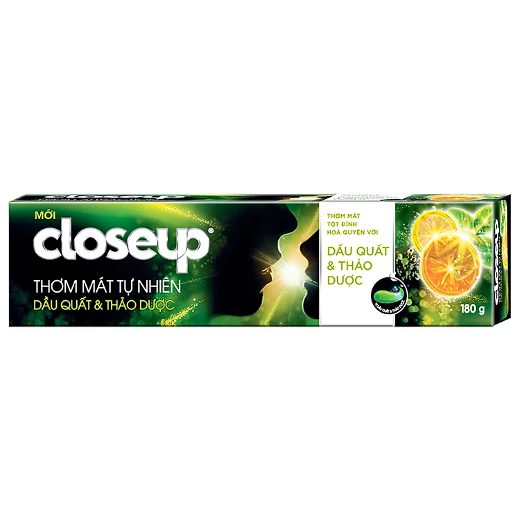 - Kem Đánh Răng Dạng Gel Closeup Thơm Mát Tự Nhiên Dầu Quất & Thảo Dược (180g) mang lại sự thơm mát tột đỉnh hoà quyện với dầu quất và thảo dược.