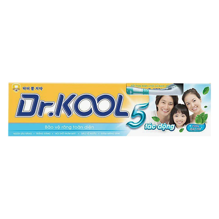 • Kem Đánh Răng Dr. Kool 5 Tác Động Hương Bạc Hà (150g) với thành phần thiên nhiên dịu nhẹ, được sản xuất theo quy trình công nghệ  Hàn Quốc hiện đại với tính năng bảo vệ răng toàn diện.