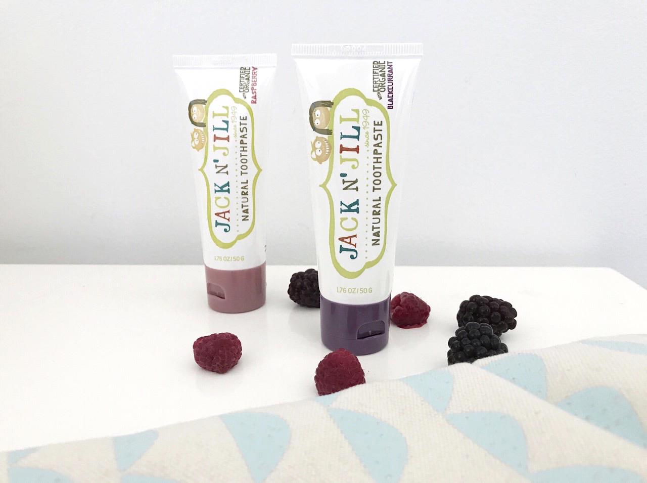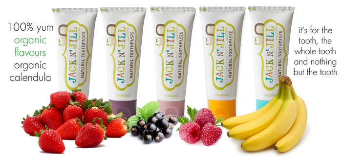 - Jack N’ Jill Natural Toothpaste giúp làm sạch răng của bé, tạo sự thích thú cho bé với nhiều lựa chọn vị hoa quả: dâu tây, chuối, việt quất, mâm xôi, phúc bồn tử đen.