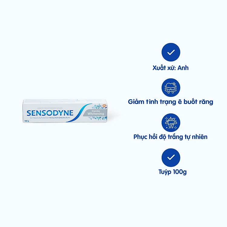 Là một sản phẩm chăm sóc răng miệng được thiết kế đặc biệt cho những người có răng nhạy cảm. Sensodyne là một thương hiệu nổi tiếng với các sản phẩm chăm sóc răng miệng dành cho răng nhạy cảm, và Gentle Whitening là một trong số các dòng sản phẩm của họ.