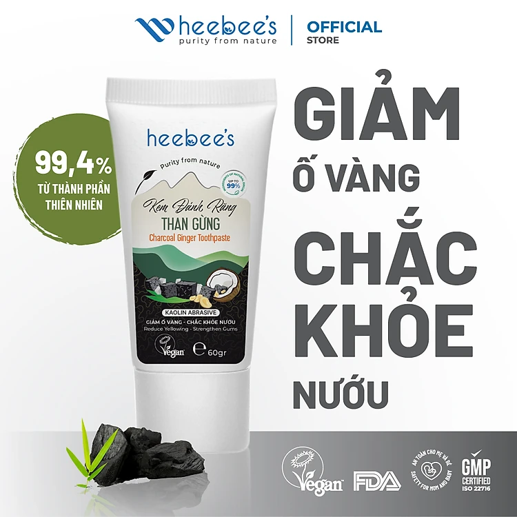 Kem Đánh Răng Thảo Dược Thuần Chay Than Gừng - Giảm ố vàng, Chắc khỏe nướu 60 Gram
