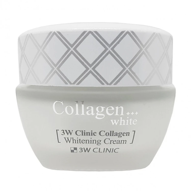 - Kem dưỡng trắng da 3W Clinic Collagen Whitening Cream là loại kem giàu dinh dưỡng, chứa thành phần làm trắng an toàn Niacinamide giúp giữ cho làn da luôn trắng sáng, làm mờ các vết thâm, nám, tàn nhang, sạm đen và đốm nâu trên da.