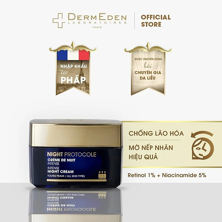 Kem dưỡng ẩm chống lão hóa da, giảm nám tàn nhang DERMEDEN Night Cream Retinol 1% + Niacinamide 5% 50ml
