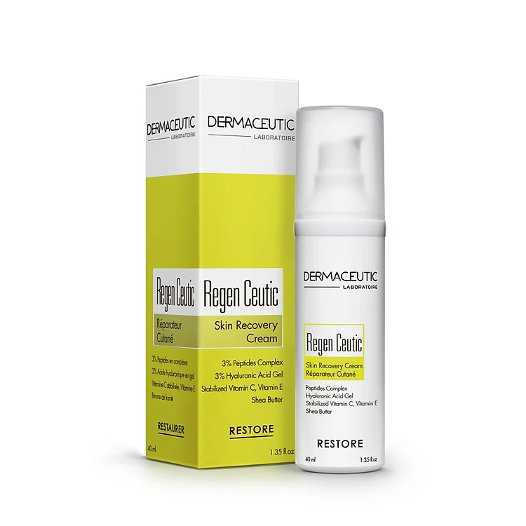 Regen Ceutic là sản phẩm mới nhất trong dòng sản phẩm phục hồi da của Dermaceutic. Regen Ceutic chứa Peptides Comples được biết đến với tên thương mại Matrixyl 3000, được chứng minh cực kỳ hiệu quả trong việc kích thích sản sinh Elastin, Acid Hyaluronic và Collagen giúp làm giảm nếp nhăn và các rãnh nhăn trên da.
