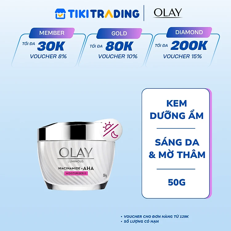Kem Dưỡng Ẩm Sáng Da, Mờ Thâm Mụn OLAY LUMINOUS NIACINAMIDE AHA 50G