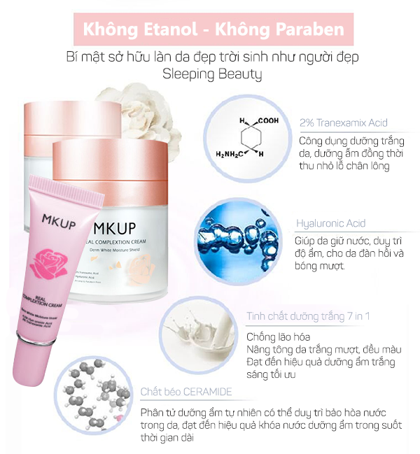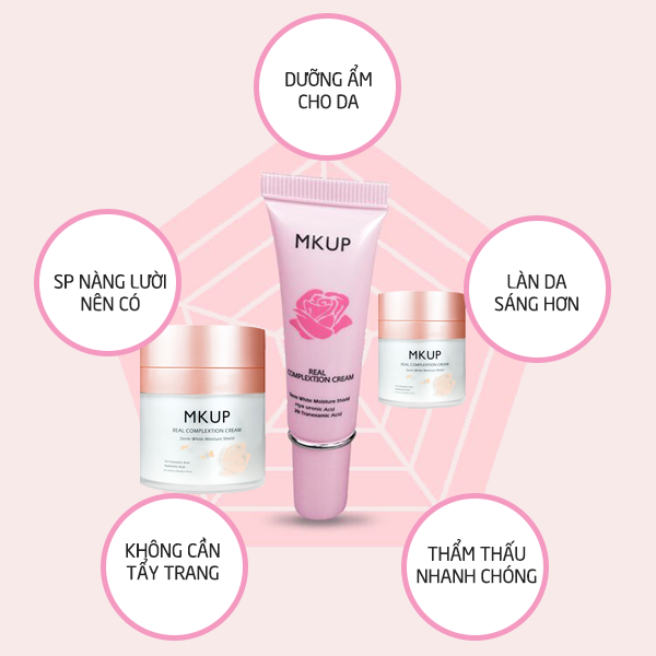 - Kem Dưỡng Ẩm Trắng Da Dành Cho Nàng Lười MKUP với hiệu ứng làm trắng kep, trang điểm cấp tốc.