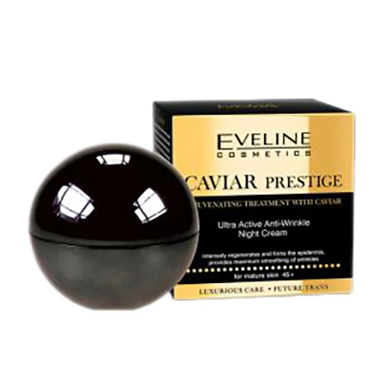 Kem Dưỡng Da Đêm Ngăn Ngừa Lão Hóa Eveline Cavier Prestige là kem dưỡng ban đêm thuộc bộ dưỡng da chiết xuất từ trứng các muối giúp tái tạo da ở các lớp tế bào, cung cấp độ ẩm cần thiết cho làn da, làm mềm da đảm bảo hiệu quả lâu dài.
