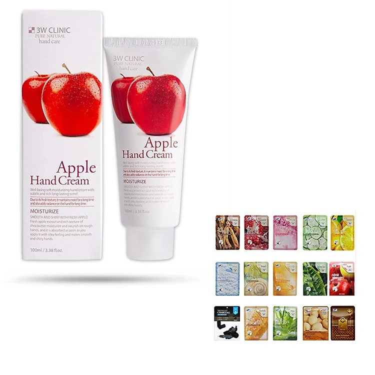 KEM DƯỠNG DA TAY 3W CLINIC MOISTURIZING APPLE HAND CREAM + TẶNG KÈM MASK 3W BẤT KỲ