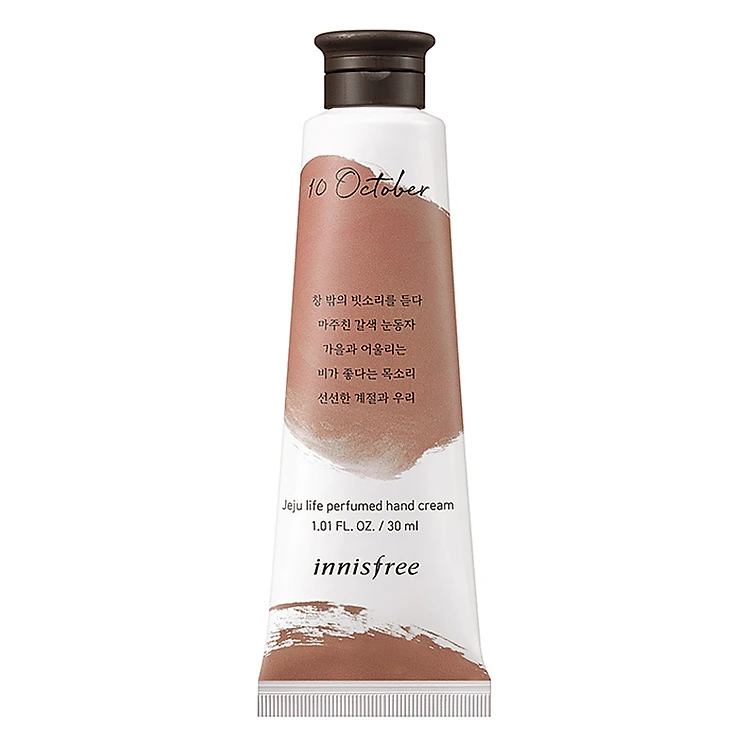 - Kem Dưỡng Da Tay Innisfree Jeju Life Perfumed Hand Cream-Autumn Rain cung cấp dưỡng chất từ chiết xuất bơ hạt mỡ và sữa dưỡng từ trái ô liu, chăm sóc và dưỡng ẩm cho đôi bàn tay thêm mềm mại, mịn màng.